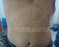 发病过程: 患者患病长达十年之久,腹部有大量的红色浸润斑,红色丘疹。并伴有瘙痒感,晚上常常备受煎熬。也曾到各地大医院去就诊过,服用过中药也擦拭过药膏,但效果都不明显,甚至一年比一年严重。在家干活也越来越少,最后家人在网络上看到我院消息,决定到我院就诊。