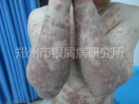 王先生看到自己病情一直没有治愈,而家里的积蓄也被自己用完,就连两个孩也因为自己辍学外出工作帮助家里减轻负担,看到眼前的一切,内心禁不住产生了轻生念头,但是家人的关怀与关爱感化了他,放弃了轻生念头,重新燃起治疗信心,但是命运多舛,王先生一次偶然机会在路边看到一个小广告写到“七天治愈牛皮癣”,王先生治病心切就抱着试一试的心态,按照广告上地址找到那个神医,然后神医就给王先生开了“一剂神药”,开始是见效挺快的,可很快就出现了反跳,于是就加大药量,这样恶性循环,病情越来越无法控制,直至加重成红皮病型,全身的红疹斑块痛痒。