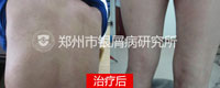 接诊李大爷的是周文敬主任。周文敬看到李大爷全身皮损,鳞屑后询问李大爷治疗既往史后,为李大爷进行全面精准检查,根据检查结果及既往史综合评估后,周主任为李大爷制定一整套康复方案,第一阶段采用蓝氧自体免疫激活疗法,净化血液,根源祛除病变细胞,清除毒素,改善微循环,增强免疫力。经过7天治疗后,李大爷身上的皮损渐渐消退,鳞屑剥落,可见到皮肤。接着第二阶段,周主任调整方案,使用蓝氧自体免疫激活疗法的同时配合药离子渗透,标本兼治,在巩固内部根基同时消除外部皮损,经过一个疗程治疗后,李大爷身上鳞屑完全消失,红疹消退,皮肤只留下一块一块暗沉斑。第三阶段,为了彻底治愈银屑病,使用311窄谱治疗仪进行皮损的针对性治疗修复,从而达到全面康复效果。【不论您年纪多大,只要你有一颗想康复的心,请点击咨询,康复之路即将为您打开】