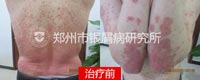 【治疗过程】治疗了一段时间后,陈某背后的皮损症状有了明显好转,以为已经康复,便停止了治疗。当时天气转冷入秋,秋冬季是银屑病比较容易发病的季节,皮损消退没多久又再次来袭,陈某用药膏应付着,也没去医院治疗。之后的五年里,银屑病反反复复,他也尝试过各种游医偏方,始终不见痊愈,并且由于长时间使用激素类药品,身上的皮损症状不断扩大蔓延,前胸后背,腿上脚上瘙痒无比。【偏方、自制药都是加重银屑病的罪魁祸首,银屑病患者应谨慎使用,详情请咨询在线专家】