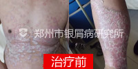 【患者主诉】:全身多处是厚厚的皮损,表面覆盖着层层银白色鳞屑,就像老树皮一样。现在头上皮损面积越来越大。