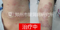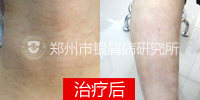【治疗经历】申雪的妈妈对银屑病不了解,随便去药店买了些药膏,结果好得快来得快,红疹鳞屑卷土而来,原来只是大腿的关节处有皮损,结果直接蔓延到腹部。妈妈带着申雪又去中医院,医生说是使用了激素药膏的缘故,于是又吃中药,无效果,一到冬天病情加重,腿上还开始起水泡,又疼又痒。一家人十分着急,偶尔听到一治好银屑病的亲戚提到我院。