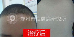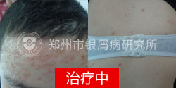 【治疗前,患者头部有大片红斑鳞屑,受损面积较大】