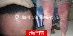 现病史:初患时在头皮出现红丘疹、红斑、皮屑,去医院给予口服中药,无效,后自购口服药(药名不详)、外涂药,停药复发,今来院