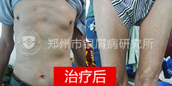 治疗一个疗程后,张大爷的病情有所好转并得到了控制;在第二个疗程后,张大爷的皮肤基本上已经恢复了正常的皮肤,连之前因为抓挠所留下的皮损部位的死皮,都已经脱落并路出光滑的皮肤。