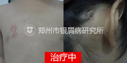 初入院:患者全身散在皮损伴较多鳞屑有新出红色点疹。经检查患者处于进展期在治疗期间会有新出,表示理解并同意治疗。