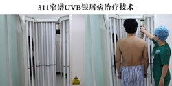 311窄谱UVB是一种新型的针对银屑病的治疗系统。通过某一波长的紫外线照射皮损,产生光化学反映或调节免疫反应等作用,从而达到治疗某些顽固皮肤病的目的。