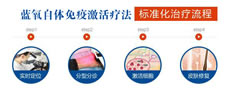 蓝氧自体免疫激活疗法通过德国赫美斯净血仪将活性氧(O3)与营养因子注入血液,活性氧进入血液后可迅速分解为氧分子与氧原子(3种活性氧),营养因子与氧分子通过人体血液循环迅速渗透到银屑病病灶区域,参与机体新陈代谢,稳定并提高血液中自由基性能,并与Td细胞表面的特异性识别抗原分子结构(T细胞抗原受体TCR)相互作用,增强Th细胞的特异性免疫应答作用与多肽抗原反应,扩大机体免疫效果作用,改善机体微循环。自体血液中的自由基通过与活性氧(O3)中的氧离子充分结合,对机体免疫B细胞膜表面的EB病毒受体进行进行靶向修复,修复B细胞的异常变异作用,系统的平衡调控恢复皮肤细胞正常28天的新陈代谢周期,减少皮肤角阮细胞的增殖分化有效的减少患者皮损处的皮屑,平衡净化机体内环境,使机体免疫系统和皮肤血液循环两者之间得到平衡,达到机体免疫和血液循环双向调节的作用。