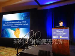 曾经到过郑州市银屑病研究所交流的世界308之父、美国华盛顿大学医学院皮肤科主任——伯纳德﹒葛菲教授也受邀参加了此次会议,葛菲教授曾经是获得美国总统奥巴马亲自接见的国宝级皮肤病专家。他在会上表示,中国医学在皮肤病领域取得的成就值得我们美国和欧洲国家学习,并举出了2014中国医疗交流中的一些收获,说到中国的一些皮肤病诊疗医院有最好的医疗资源和最棒的医疗团队。