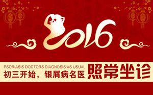 回顾过去一年,是不是忙碌占满您的生活,以致于无暇关心家人和自己的身体健康?即使确诊疾病,由于求医无果等各种原因,也一直未得到及时有效治疗。2016年春节马上就要来临,为确保大家在辞旧迎新的日子里“辞旧病迎新岁”,在春节到来之际,郑州市银屑病研究所年前照常接诊,年后从初三起恢复接诊,为健康保驾护航。